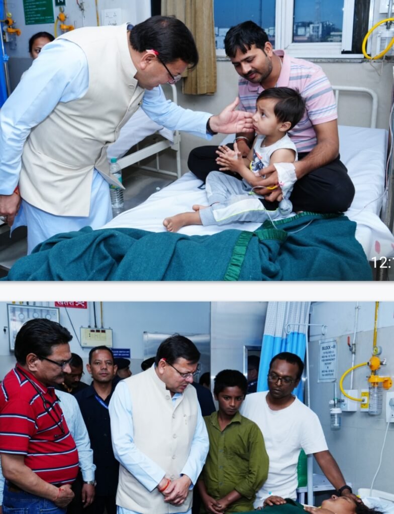 मुख्यमंत्री पुष्कर सिंह धामी (Chief Minister Pushkar Singh Dhami) ने सोमवार को कोरोनेशन अस्पताल पहुंचकर फूड प्वाइजनिंग से बीमार लोगों को हाल चाल जाना। मुख्यमंत्री ने कोरोनेशन अस्पताल में भर्ती मरीजों से बातचीत कर उनके शीघ्र स्वास्थ्य लाभ की कामना की। उन्होंने जिलाधिकारी देहरादून और स्वास्थ्य विभाग के अधिकारियों को अस्पतालों में भर्ती लोगों को समुचित इलाज देने के निर्देश दिये।