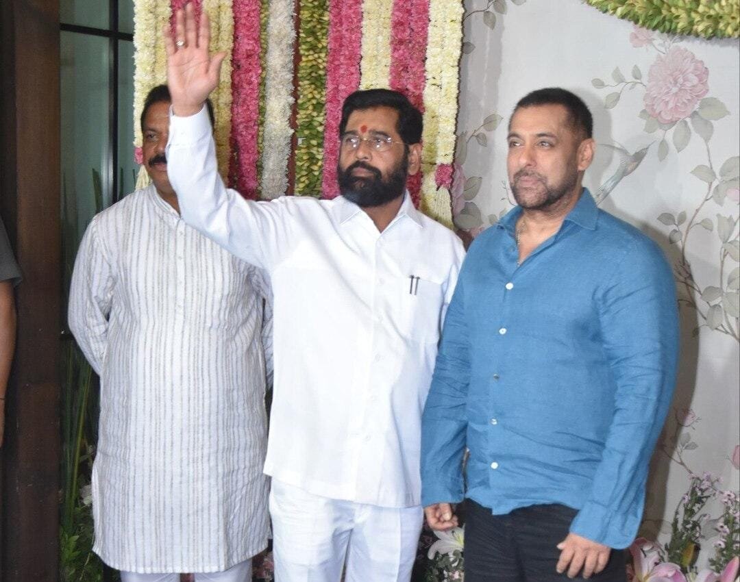 अर्पिता के भाई सलमान खान और मुख्यमंत्री एकनाथ शिंदे दोनों एक साथ अर्पिता के घर पहुंचे हैं। इस बार सलमान ने नीली शर्ट और काली पैंट पहनी हुई है। एकनाथ शिंदे ने सफेद रंग के कपड़े पहने हुए हैं। उनका एक साथ का वीडियो सोशल मीडिया पर वायरल हो गया है। इस वीडियो पर कई लोगों ने लाइक्स और कमेंट्स की बौछार कर दी है।