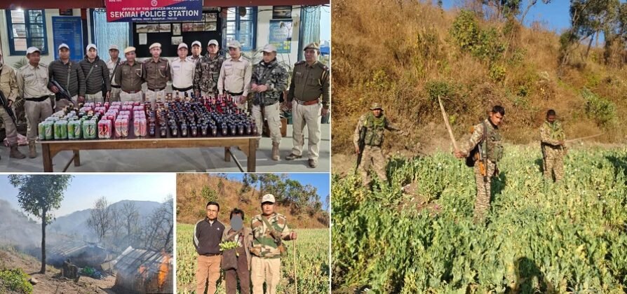 Imphal : भारी मात्रा में अंग्रेजी शराब जब्त, छह एकड़ अफीम की खेती नष्ट