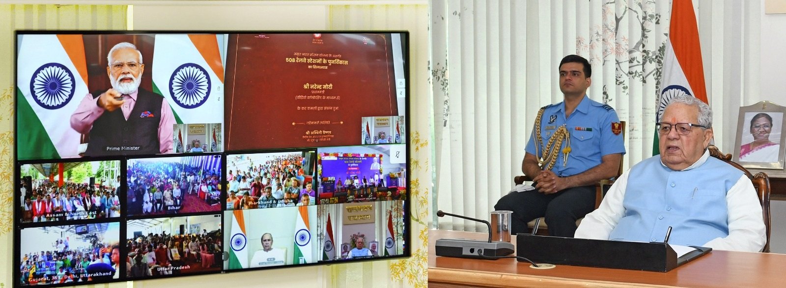 राज्यपाल कलराज मिश्र ने राजभवन से वीडियो कॉन्फ्रेंसिंग के माध्यम से अमृत भारत स्टेशन योजना के तहत रेलवे स्टेशनों की कायाकल्प परियोजना के शिलान्यास समारोह में भाग लिया। राज्यपाल मिश्र ने इसके लिए प्रधानमंत्री का आभार जताते हुए इसे राजस्थान के लोगों के लिए अनुपम सौगात बताया। राज्यपाल ने अमृत भारत स्टेशन योजना को महत्वपूर्ण बताते हुए कहा है कि इससे देश में रेलवे स्टेशन आधुनिक ही नहीं बल्कि वहां यात्रा सुविधाओं का भी तेजी से विस्तार होगा। उन्होंने कहा कि स्वर्णिम भारत के लिए यह ऐतिहासिक परियोजना है।