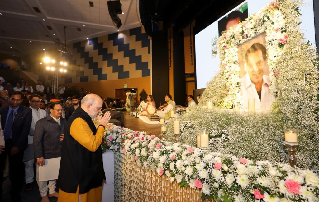 नई दिल्ली : (New Delhi) केन्द्रीय गृह एवं सहकारिता मंत्री अमित शाह, लोकसभा अध्यक्ष ओम बिरला (Union Home and Cooperation Minister Amit Shah, Lok Sabha Speaker Om Birla) केंद्रीय मंत्रियों, सांसदों और फिल्म जगत से जुड़े अन्य लोगों ने बुधवार को प्रसिद्ध अभिनेता धर्मेंद्र की स्मृति में दिल्ली के अंबेडकर इंटरनेशनल सेंटर में आयोजित श्रद्धांजलि सभा में अपनी भावांजली अर्पित की। धर्मेंद्र की पत्नी और भाजपा सांसद हेमा मालिनी (Dharmendra’s wife and BJP MP Hema Malini) ने श्रद्धांजलि सभा का आयोजन किया था। उन्होंने कहा कि उनका जाना उनके लिए एक अपूरणीय व्यक्तिगत क्षति है।