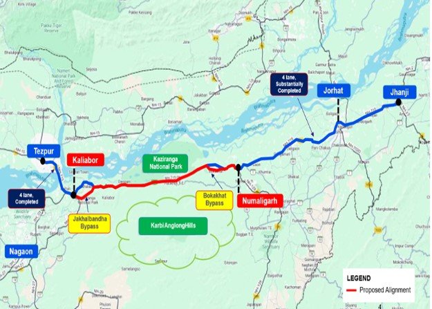 केंद्रीय मंत्री अश्वनी वैष्णव (Union Minister Ashwini Vaishnav) ने बताया कि इस परियोजना में जानवरों का सुरक्षित आवागमन के लिए काजीरंगा राष्ट्रीय उद्यान (केएनपी) से गुजरने वाले मार्ग पर वन्यजीवों के लिए अनुकूल लगभग 34.45 किलोमीटर लंबे एलिवेटेड कॉरिडोर का निर्माण किया जाएगा। इसके अलावा, 30.22 किलोमीटर मौजूदा सड़क को दो लेन से चार लेन में परिवर्तित किया जाएगा और 11.5 किलोमीटर जाखलाबंधा बाईपास तथा 9.5 किलोमीटर बोकाखाट ग्रीनफील्ड बाईपास का निर्माण किया जाएगा। यह सड़क एनएच-127, एनएच-129 और राज्य राजमार्ग-35, तीन हवाई अड्डे (तेजपुर, लखीमपुर, जोरहाट) और तीन रेलवे स्टेशन (नगांव, जागीरोड, बिश्वनाथ चारियाली) जैसी कई अहम जगहों को जोड़ेगी।