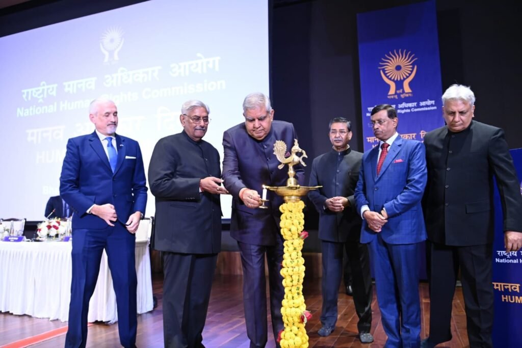 उपराष्ट्रपति जगदीप धनखड़ नई दिल्ली के प्रगति मैदान में मानवाधिकार दिवस समारोह में शामिल हुए। इस अवसर पर उन्होंने कहा कि भारत की सभ्यता का लोकाचार और संवैधानिक ढांचा मानवाधिकारों के सम्मान, सुरक्षा और पोषण के प्रति हमारी गहरी प्रतिबद्धता को दर्शाता है।