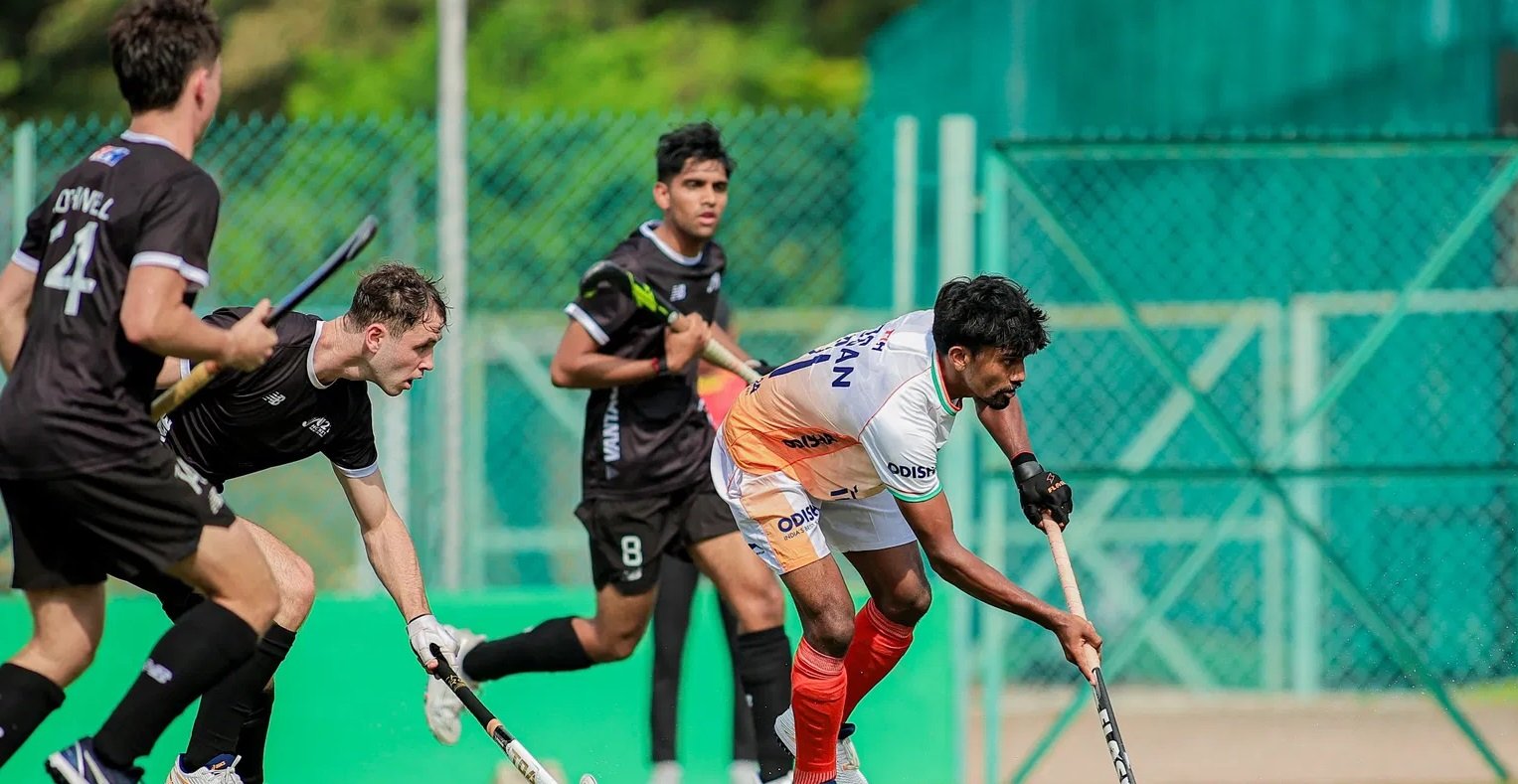 नई दिल्ली : (New Delhi) भारतीय जूनियर पुरुष हॉकी टीम (Indian junior men’s hockey team) ने रविवार को सुल्तान ऑफ जोहोर कप 2025 में अपने दूसरे मुकाबले में न्यूजीलैंड को 4-2 से हराकर जीत दर्ज की। मलेशिया के जोहर बाहरू में खेली जा रही प्रतियोगिता में भारतीय टीम की ओर से अर्शदीप सिंह (2वें मिनट), पीबी सुनील (15वें मिनट), अराइजीत सिंह हुंडल (26वें मिनट) और रोमन कुमुर (47वें मिनट) ने गोल किए। न्यूजीलैंड के लिए गस नेल्सन (41वें मिनट) और ऐडन मैक्स (52वें मिनट) ने गोल किए।