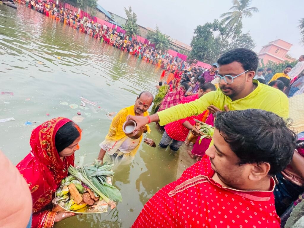 रविवार को छठ व्रत के दूसरे दिन ‘खरना’ पूजा बड़ी श्रद्धा और भक्ति भाव से संपन्न हुआ। व्रतियों ने केले के पत्ते पर अरवा चावल, गंगाजल, दूध, गुड़ से बनी खीर, रोटी और केला प्रसाद के रूप में ग्रहण किया।