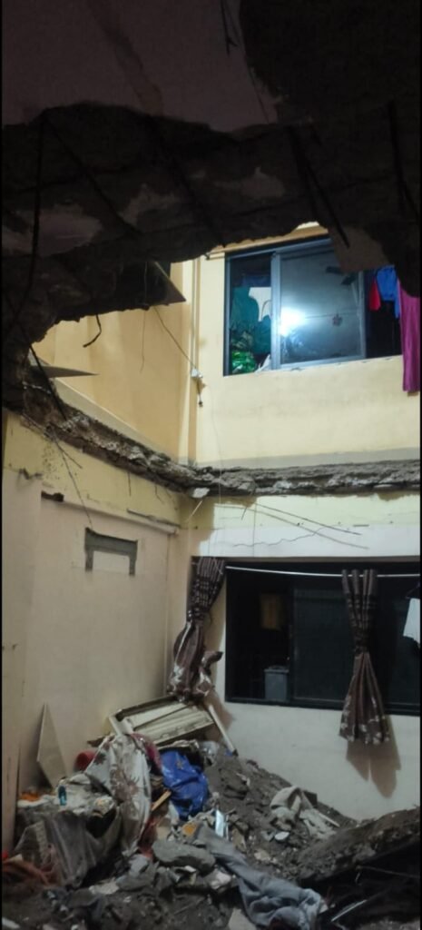 ठाणे के वागळे एस्टेट क्षेत्र (Wagle Estate area of ​​Thane) में मंगलवार तड़के एक पुराने अपार्टमेंट की इमारत में बड़ा हादसा हो गया। नूतन नीलम अपार्टमेंट(A wing of Nutan Neelam Apartments) की ए विंग की पांचवीं मंजिल का स्लैब चौथी मंजिल के कमरे पर गिर गया, जिससे तीन लोग घायल हो गए। घटना के बाद पूरी इमारत को खाली कराकर सील कर दिया गया है और रहवासियों को अस्थायी ठिकाने पर भेजा गया है।
